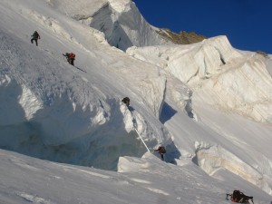 2e jour : ascension du Dôme de Neige des Ecrins par la voie normale. Passages de crevasses et de séracs, progression sur différents types de neige et un sommet de 4000m à la clef. (900 m de dénivelé)