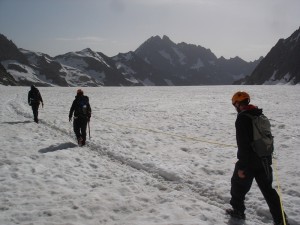 1er jour : départ du village d’Ailefroide en direction du refuge des Ecrins (3175m) par le glacier Blanc. (1300 m de dénivelé)