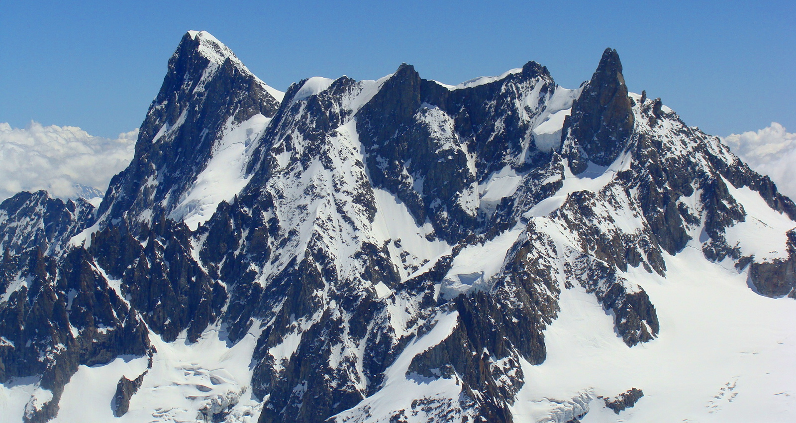 Du sommet de la Meije Orientale la vue sur le Doigt de Dieu et la face Nord du Pic Gaspard est impressionnante.